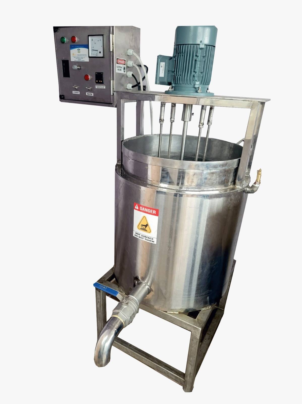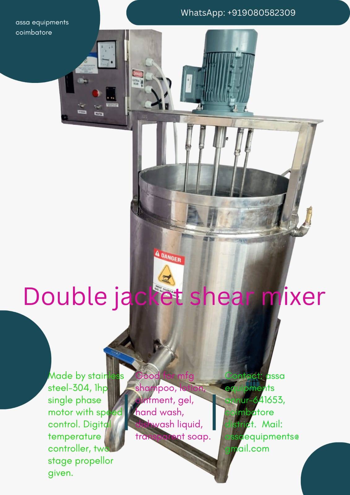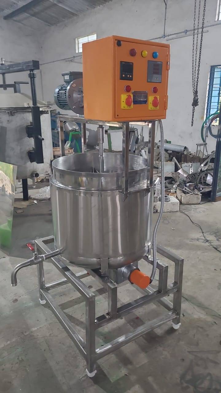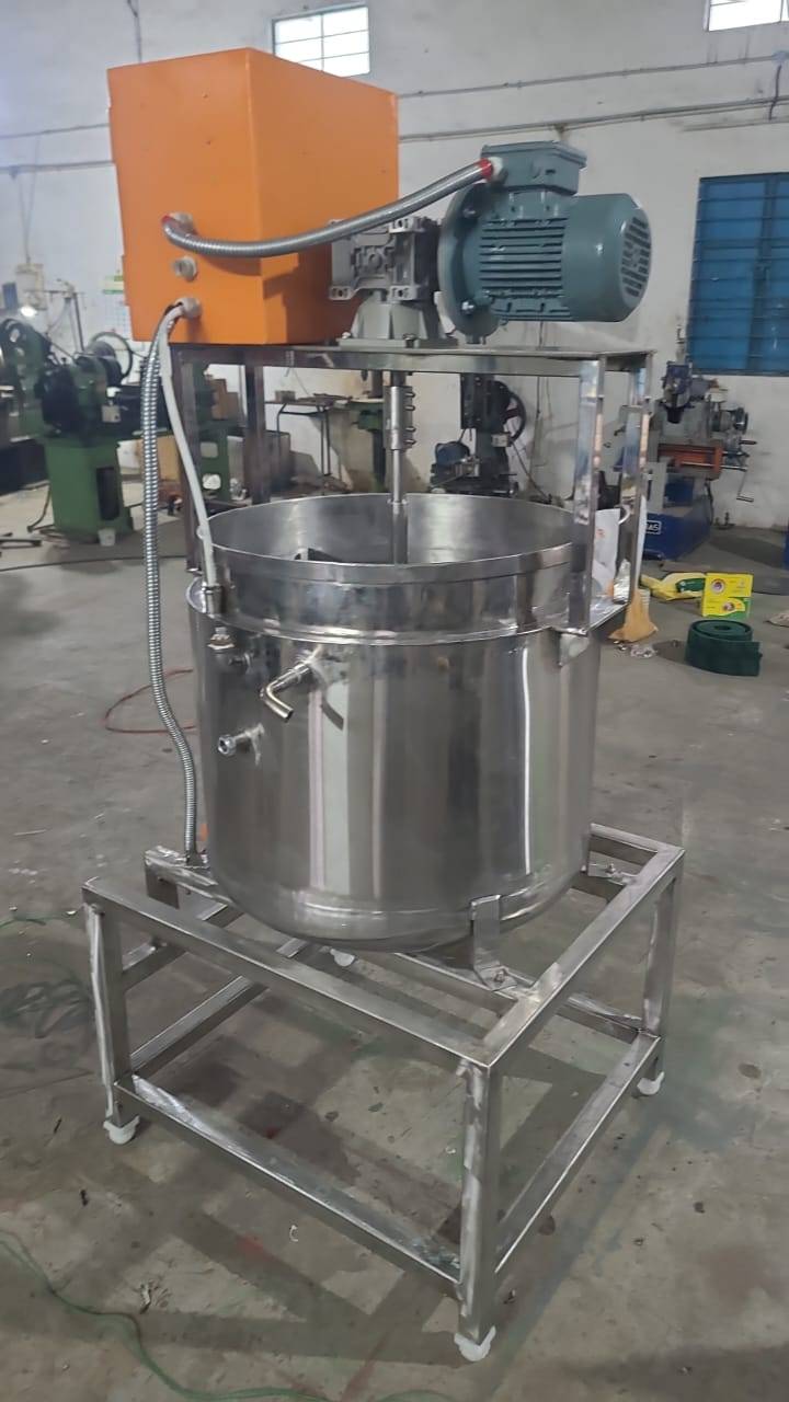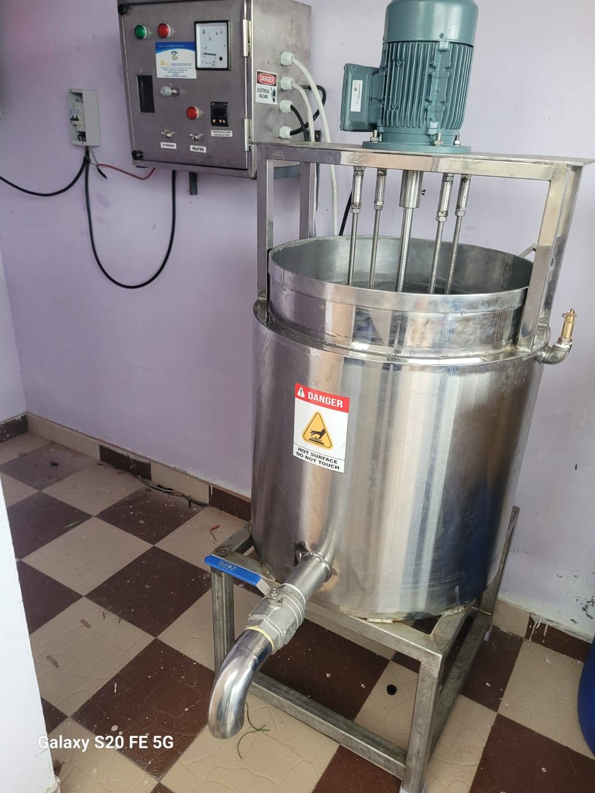its used in making soap base, shampoo, lotion, ointment, gel, handwashliquid, dishwashliquid, transparentsoap. all parts made by stainless steel-304. melting the base or making soap base. temperature can be controlled. mixing by motorized stirrer with speed control. double jacketed for steam or thermic fluid heating. single or 3 phase heater attached.